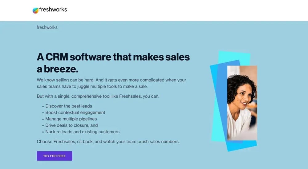 Freshworks is a CRM solution that simplifies the sales process, making it easy for small businesses.