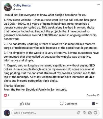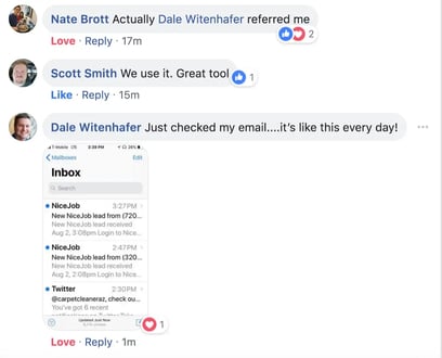 It’s also incredibly valuable when people make testimonials about your business in Facebook Groups. At NiceJob, we’ve acquired tons of our own customers this way.