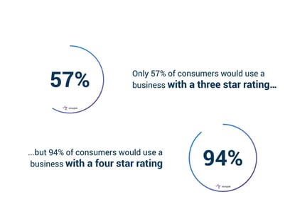 87% of people say that a business needs a rating of 3-5 stars before they will use them.