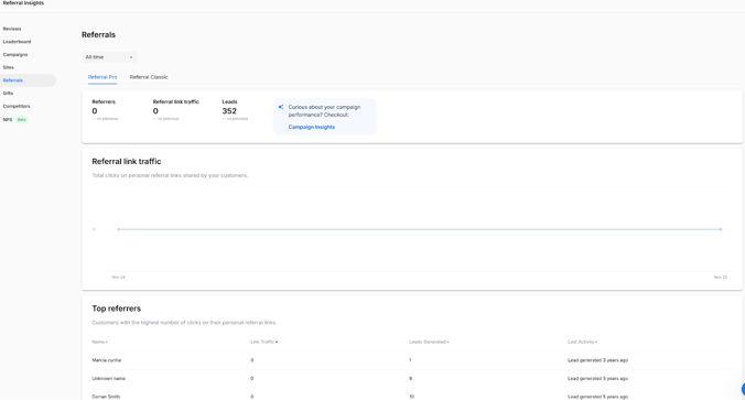 Your Referrals Pro dashboard shows exactly how many referrals and clicks your customers are generating, so you can see what’s working at a glance