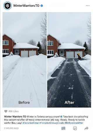 In snow removal, results speak louder than words. A photo of a driveway buried under snow, followed by a shot of the same driveway completely clear, is more convincing than any sales pitch.