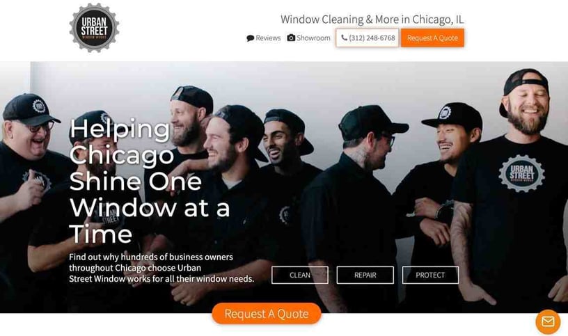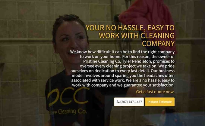 - Hero image: this is the very top of your website; the first thing people see when they land on your site. Based on our research, in the hero section of your website, an image of the services you perform works best.