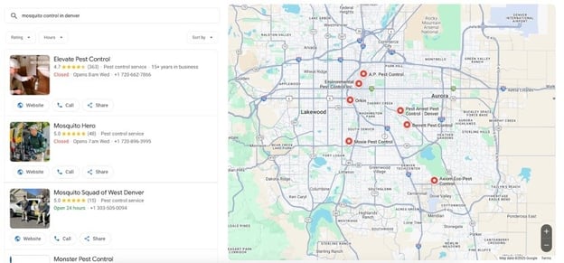Make it easy for happy customers to leave reviews by sending follow-up emails or texts with a direct link to your review page or third-party site. - Use Local SEO Strategies: Instead of only optimizing for generic keywords like ‘pest control services’, focus on longer, location-specific phrases like ‘mosquito control in Denver’ or ‘termite exterminator near me’.