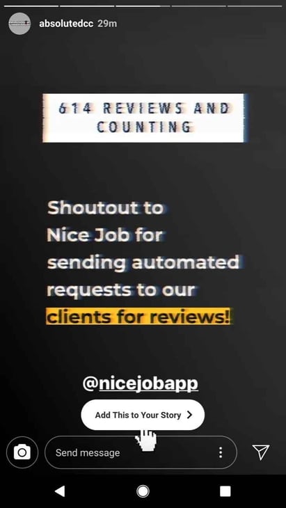 Here's an example of a NiceJob user posting a shoutout on their own Instagram story: