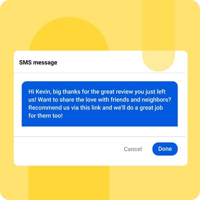 - No more writing bespoke “Hey, can you leave us a review?” texts