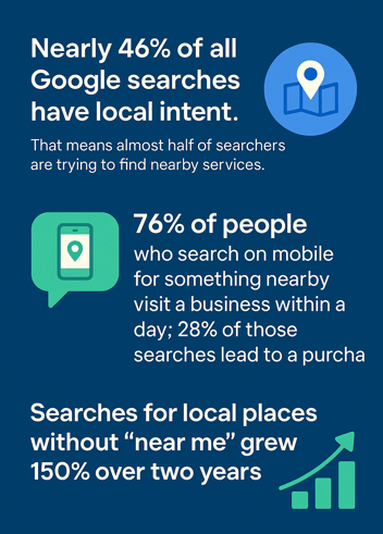 Nearly 46% of all Google searches have local intent. That means almost half of searchers are trying to find nearby services.