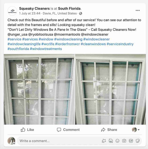 With its visual nature, Instagram is another excellent platform for sharing images of your clean, sparkling windows or behind-the-scenes shots of your team at work.